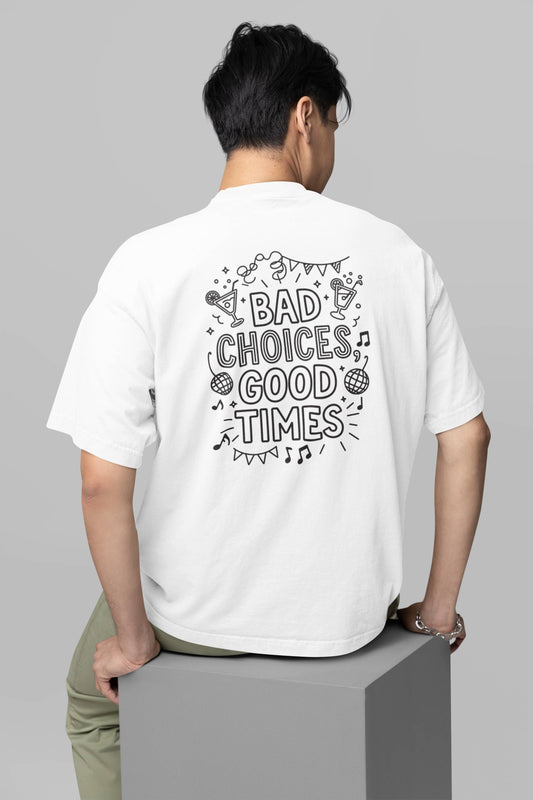 "Bad Choices, Good Times" Oversized Boxy Tee – Party Hard, Stay Stylish